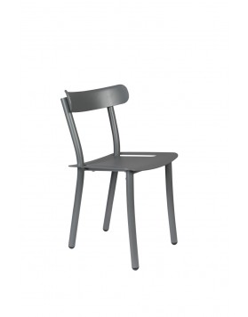 Fabricada íntegramente en aluminio sin mantenimiento. Las patas traseras atravesaran el delgado asiento y permite que se apilen hasta cuatro piezas.