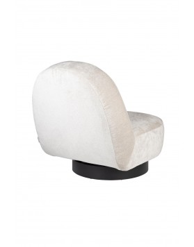 Cómodo sillón de líneas suaves y forma robusta, con amplio asiento, tapizado en un suave tejido. Su base giratoria negra permite disfrutar del sol y relajarte en cada rincón de la habitación.