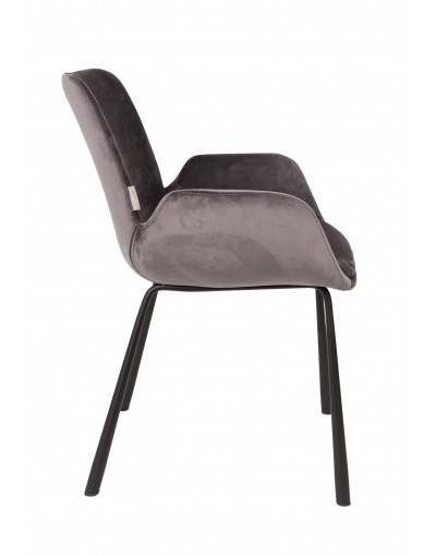 Terciopelo 100% poliéster > 20.000 Martindale, solidez del color 4- 5. Estructura de madera contrachapada con relleno de espuma de PU, densidad 25-30. Cojín de asiento con funda extraíble. Patas de acero con recubrimiento de polvo negro