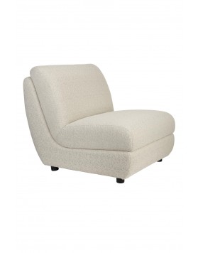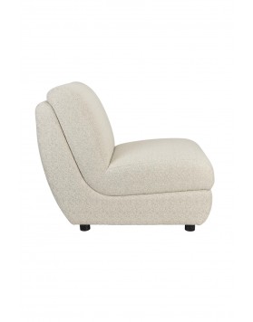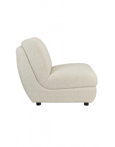 Cómodo sillón de líneas suaves y forma robusta, con amplio asiento, tapizado en un suave tejido. Su base giratoria negra permite disfrutar del sol y relajarte en cada rincón de la habitación.