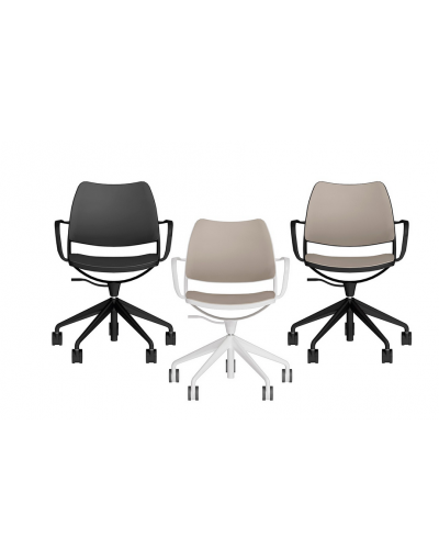 Inspirada en los clásicos modernos de mediados de siglo, ¡pero tiene un fuerte carácter actual! Una silla que rezuma clase, esta vez giratoria y con ruedas.