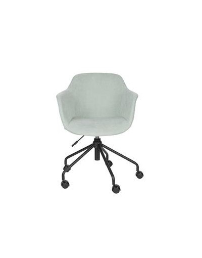Silla de oficina con tapizado 100% poliéster, asiento de PP con espuma de PU y estructura de acero con recubrimiento de polvo negro. Viene con regulador manual de altura.