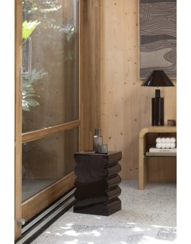 El taburete Fragment aporta calidez y carácter a cualquier interior gracias a su diseño artesanal. Su base de madera de mango en tono nogal crea un contraste elegante con el asiento tapizado en una suave tela de estampado gráfico inspirado en los años 70. Cada pieza está hecha a mano, lo que garantiza una calidad única y un acabado distintivo. Es un complemento versátil, ideal como reposapiés o asiento adicional en cualquier espacio.
