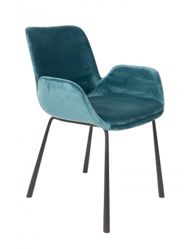El amplio asiento, su respaldo inclinado y la lujosa tela de terciopelo hacen que esta silla de comedor sea extraordinariamente cómoda y elegante.