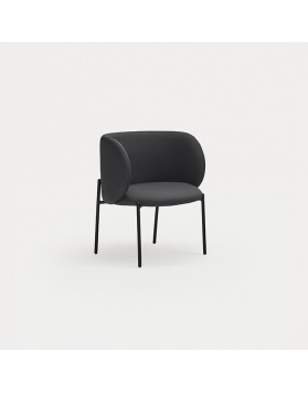 Terciopelo 100% poliéster > 20.000 Martindale, solidez del color 4- 5. Estructura de madera contrachapada con relleno de espuma de PU, densidad 25-30. Cojín de asiento con funda extraíble. Patas de acero con recubrimiento de polvo negro