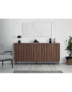 El aparador Aure, de clara inspiración nórdica, presenta un juego de líneas verticales creando un aura clásica con líneas modernas que aportan calidez al hogar.