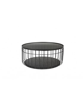 Tapa y base de hierro pintado en polvo negro con tapa superior de cristal templado de color negro.