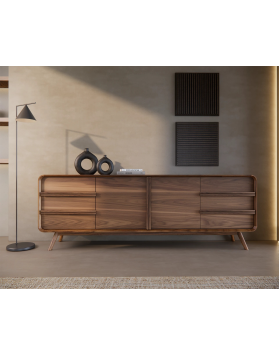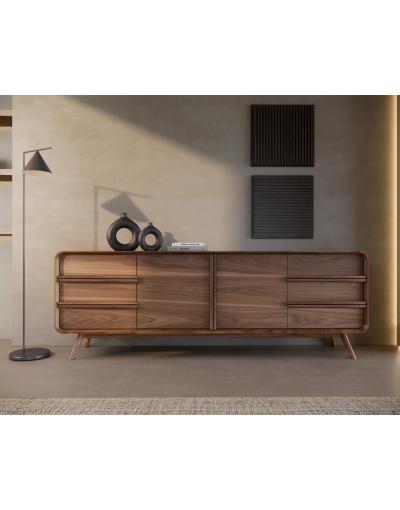 El Aparador Kurve destaca por su diseño elegante y contemporáneo, combinando líneas suaves con la calidez natural de la madera. Disponible en varias configuraciones de puertas y cajones, ofrece una solución de almacenaje versátil y funcional para salones y comedores.