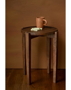La mesa de centro y la mesa auxiliar de esta serie te transportarán a la acogedora sensación de pasado. El cuidado diseño y la madera de nogal de alta calidad confieren a estas mesillas un aspecto inconfundible. Las mesas tienen un tablero redondo que se puede utilizar como bandeja y un robusto bastidor con patas que se estrechan ligeramente hacia dentro.