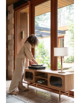Las maderas nobles contrastan con las líneas claras y puras de inspiración nórdica e influencias niponas. Artesanía, vanguardia y calidez directa a tu salón con este mueble de puertas en madera maciza fresada.