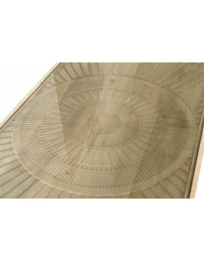 Encontramos una manera de incorporar el diseño en espiga en lo que mejor sabemos. Se utilizó la madera cpn ese entramado en el tablero de la mesa que se combina con una base elegante, en latón envejecido o negro.