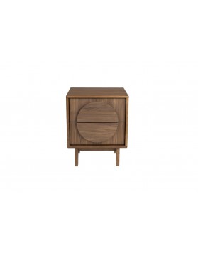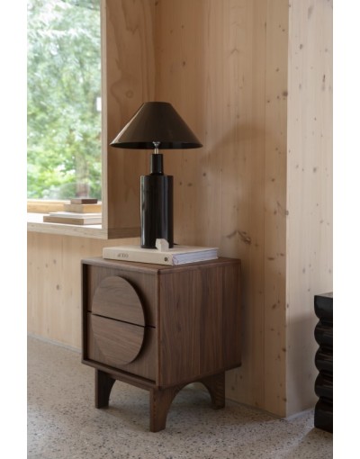 Si te gusta incorporar la calidez de un interior vintage a tu hogar con la calidad de hoy, la colección Dutchbone Arda es perfecta para ti. Los muebles de esta serie están fabricados en madera de un intenso acabado nogal. Un tono que contrasta a la perfección con el color crema de la superficie de piedra natural. La mesita de noche también destaca por su diseño con patas cónicas, que evocan un interior de los años 50.