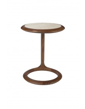 Desde los anillos dobles en su diseño hasta el uso de dos tipos de materiales que contrastan a la perfección. Incluso su función es doble. La mesa crea un ambiente acogedor y, además, es práctica, ya que se puede deslizar sobre el asiento del sofá.