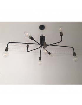 Lámpara de techo colgante de diseño contemporáneo con estructura metálica en elegante negro mate. Su silueta minimalista con seis puntos de luz orientados crea una iluminación uniforme y moderna, ideal para salones, comedores o espacios de trabajo. Compatible con bombillas LED GU10 regulables incluidas.