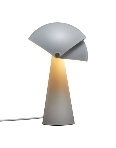 La lámpara de mesa Hello de la diseñadora danesa Charlotte Høncke tiene un lenguaje de diseño alegre y acogedor y una silueta clásica y orgánica. La pantalla grande abraza maravillosamente la cúpula de vidrio blanco opalino e incluso se puede girar completamente para obtener una mezcla divertida entre luz directa e indirecta.