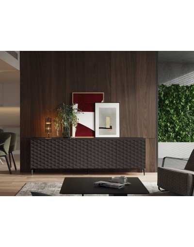 Una colección de aparadores de diseño elegante y minimalista, reconocida por sus frentes lacados con texturas en relieve que evocan obras escultóricas. Superficies armoniosas, funcionales y estéticamente impactantes que transforman lo bidimensional en volumen, aportando un carácter distintivo a espacios abiertos. Interior siempre en melamina y frentes siempre lacados. Personalizable con distintas opciones de patas. Para acabados y medidas especiales, contacta a: info@esturri.com.