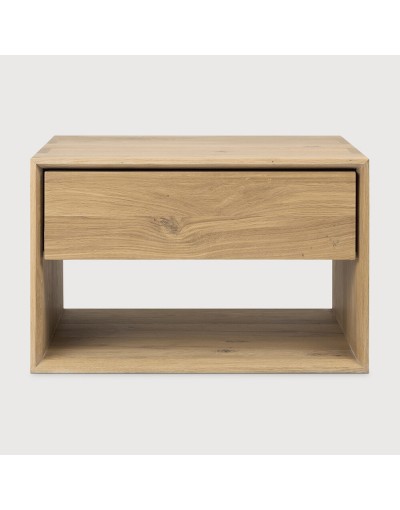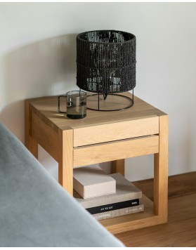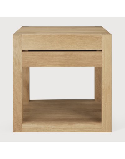 Esta mesita de noche de roble macizo es el complemento perfecto para la cama Azur. La mesita de noche Azur cuenta con un cajón.