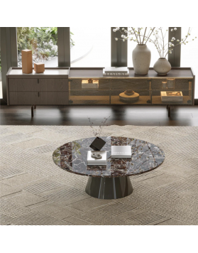 La colección Suki incluye un set de tres mesas auxiliares que combinan bases cilíndricas de madera maciza de mango con elegantes superficies de mármol auténtico. Su diseño orgánico y cálido transforma cualquier estancia en un espacio acogedor, pudiendo usarse juntas o por separado.