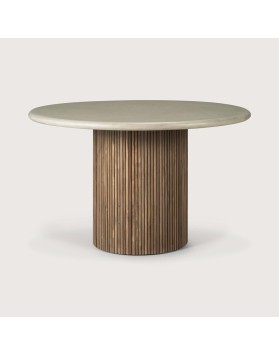 La colección Roller Max destaca por su diseño distintivo, caracterizado por el efecto de listones de madera apilados. Esta mesa de comedor de exterior combina elegancia y funcionalidad de manera natural y atemporal. Combina una superficie de cemento acabado a mano con una base de teca maciza recuperada, creando una combinación fabulosa de materiales que ofrece tanto practicidad como durabilidad, adecuada para espacios interiores y exteriores.