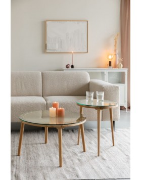 Estas mesas de centro de estilo natural es la compañera perfecta para cualquier estancia. La madera de roble combinado con el ratán, el mimbre y el vidrio transmiten calidez, transparencia y calma.