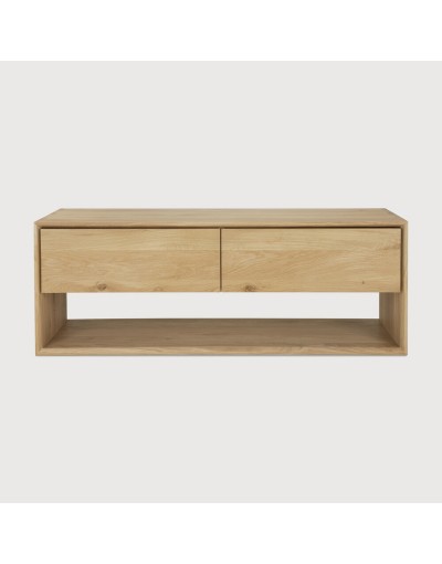 Sencillo y robusto, con líneas decididas, el mueble de TV Shadow de roble macizo es una solución sencilla pero impresionante para sus necesidades de almacenamiento.