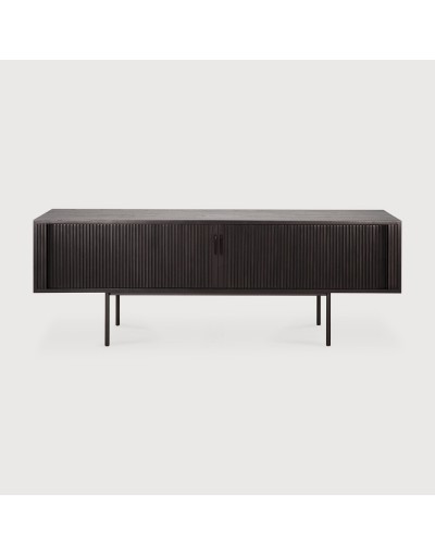 El mueble de televisión Grooves de teca maciza es, como mínimo, conmovedor. Cada una de las líneas que se ven está tallada a mano, lo que hace que cada pieza sea realmente única. Las pequeñas imperfecciones forman parte de la historia, más aún: realzan el carácter de Grooves. El resultado es una superficie ligeramente diferente cada vez, cada una con su propio ritmo y dinámica. La hermosa teca oscura continúa en el interior, donde los estanterías y los cajones guardarán sus objetos más preciados.