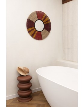 El espejo Pure posee la forma desigual del material que se utiliza para el espejo: las raíces de un árbol de teca. Las raíces de la teca se transforman bajo tierra en una madera densa y luego se secan, ¡muy sostenible! Además de su función práctica, el espejo también le da sabor a la habitación.