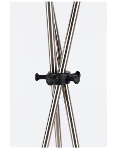 Perchero de pie estilo trípode fabricado en acero con junta en polipropileno. Carga máxima de peso: 3 kg por percha.