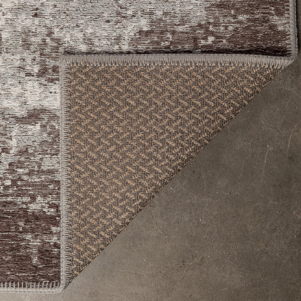 Alfombra tejida a máquina con aspecto envejecido. Pila: 80% algodón, 20% lana. Borde bordado. Forro de yute antideslizante.