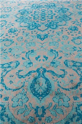 Alfombra rectangular tejida a máquina y apta para calefacción por suelo radiante. Está fabricada en 85% viscosa y 15% poliéster con parte posterior SBR.