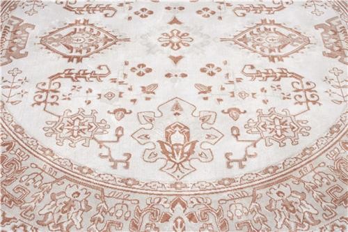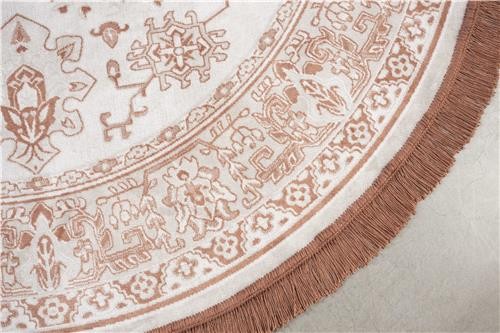 Alfombra antideslizante apta para suelo radiante. Tejido mixto tejido a máquina (85% viscosa, 15% poliéster). Parte inferior de caucho de estireno-butadieno