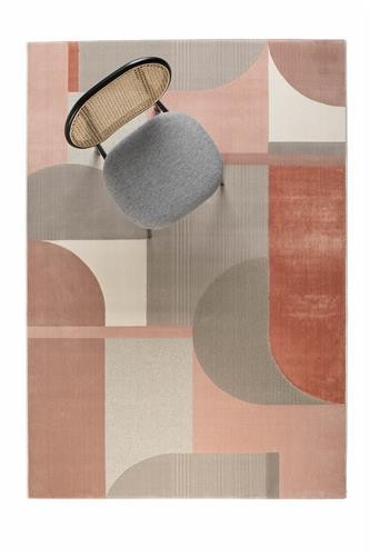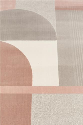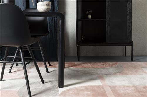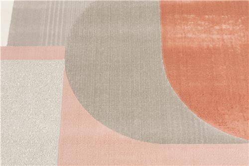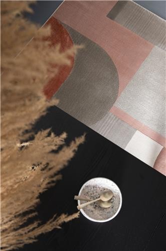 Esta alfombra no solo combina diferentes colores para crear un diseño gráfico inspirado en Memphis, sino que también tiene patrones entretejidos y motivos rasurados para crear un efecto de profundidad muy especial.