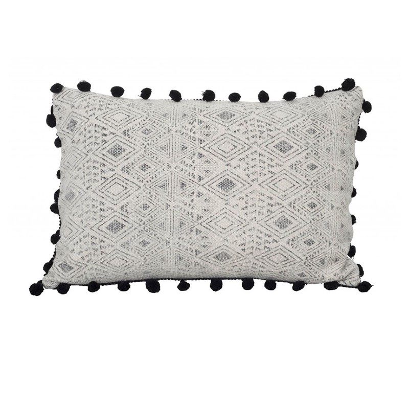 Es una cómoda almohadilla rectangular. Tiene un color blanco y negro agradable. La tela es de algodón 100 % .