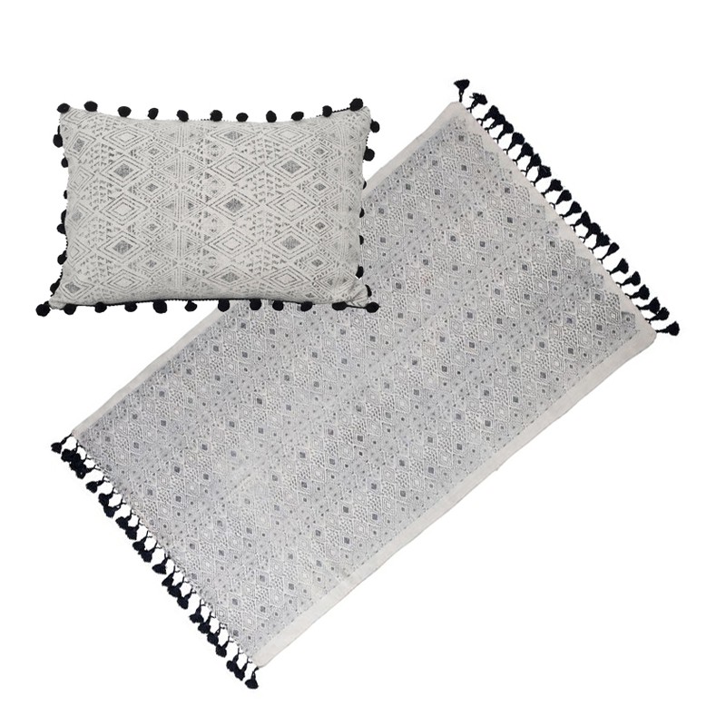 cojin : 60 x 40 cm y alfombra : 120 x 180 cm
