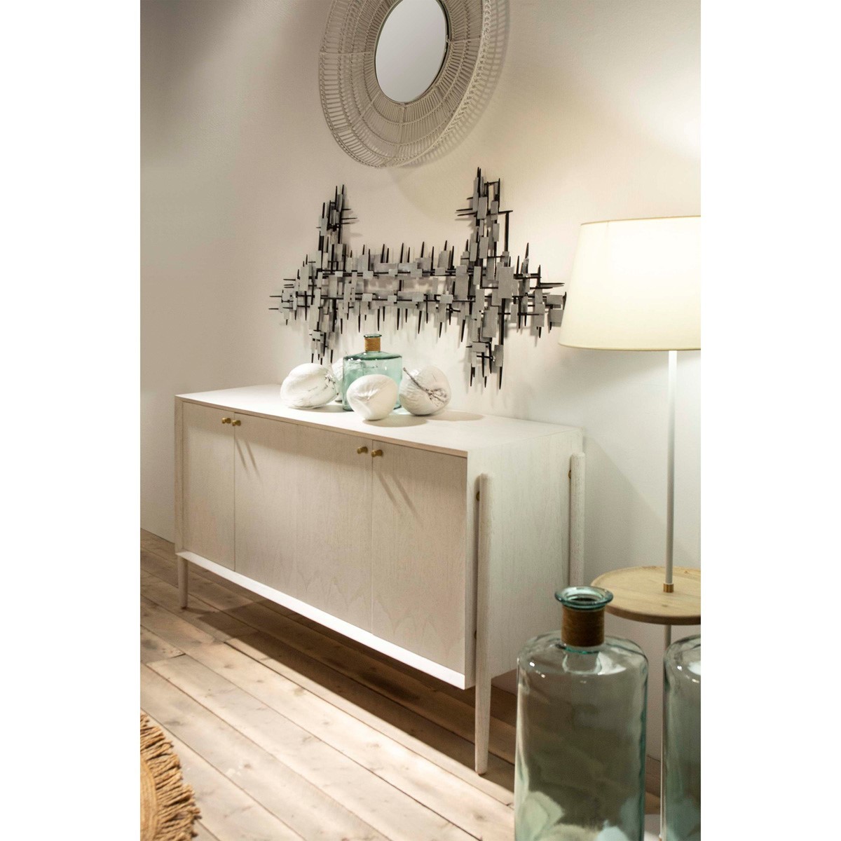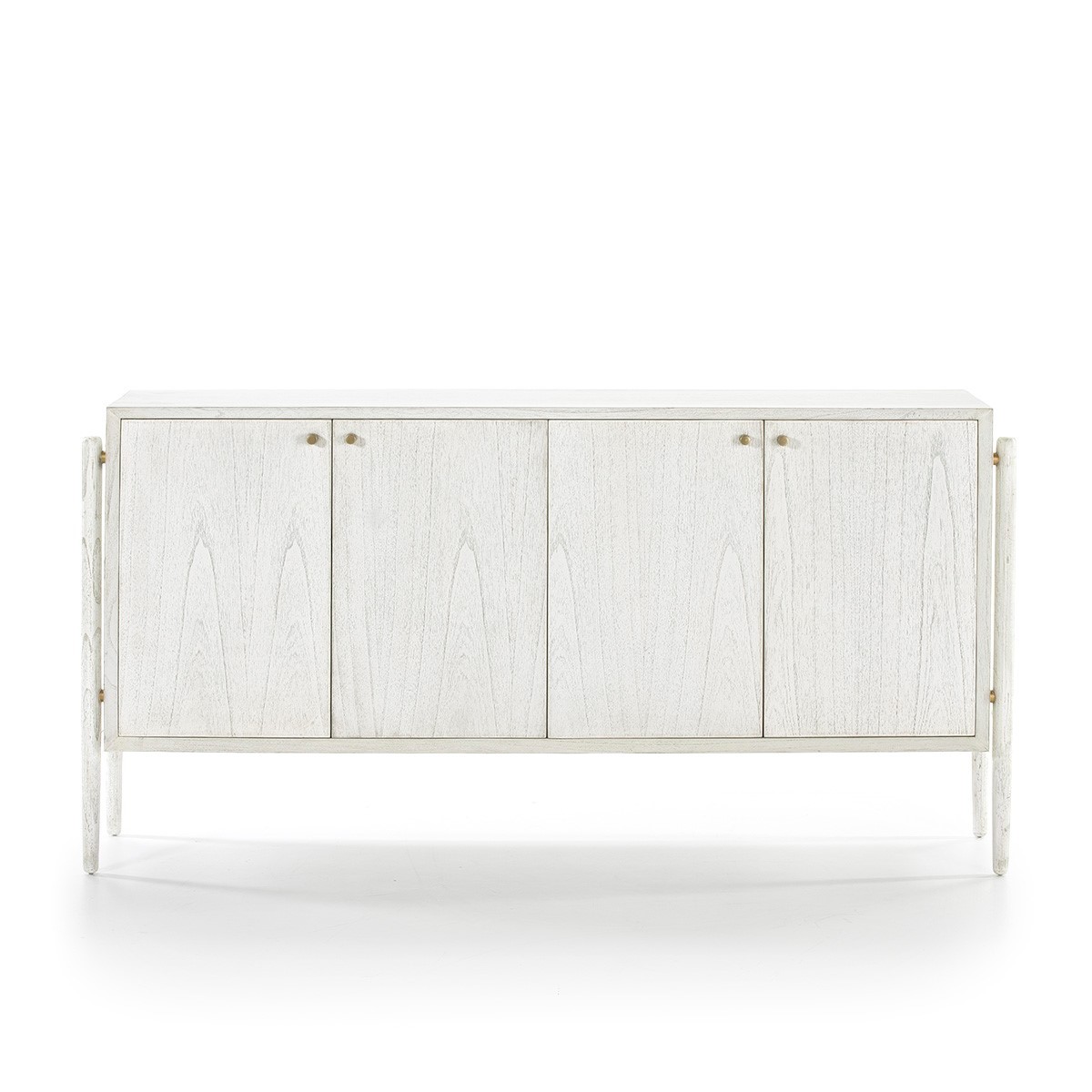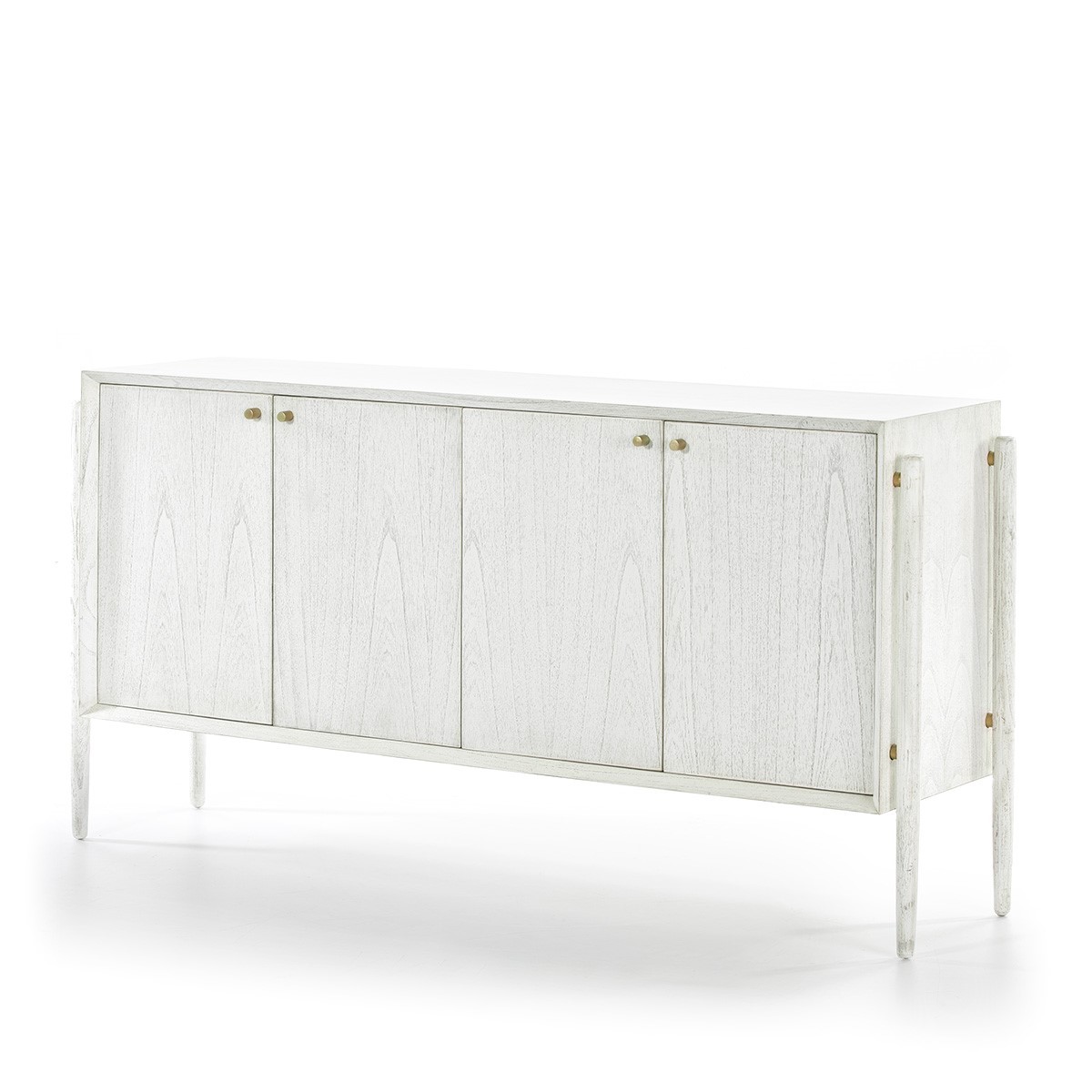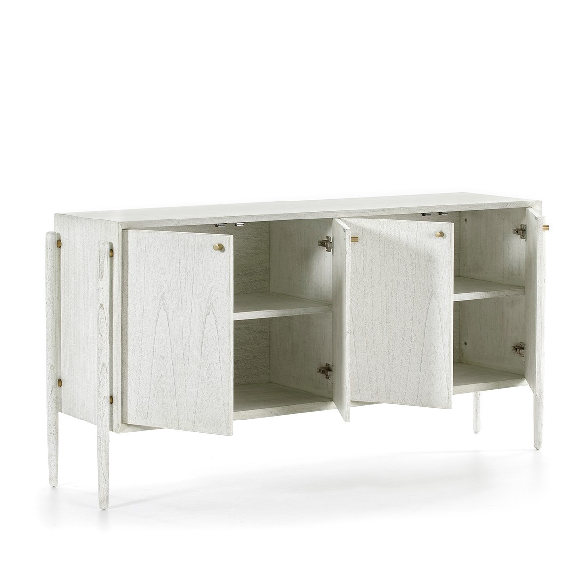 Aparador de madera procedente de bosques sostenibles. Acabado en pintura blanca y detalles en dorado.