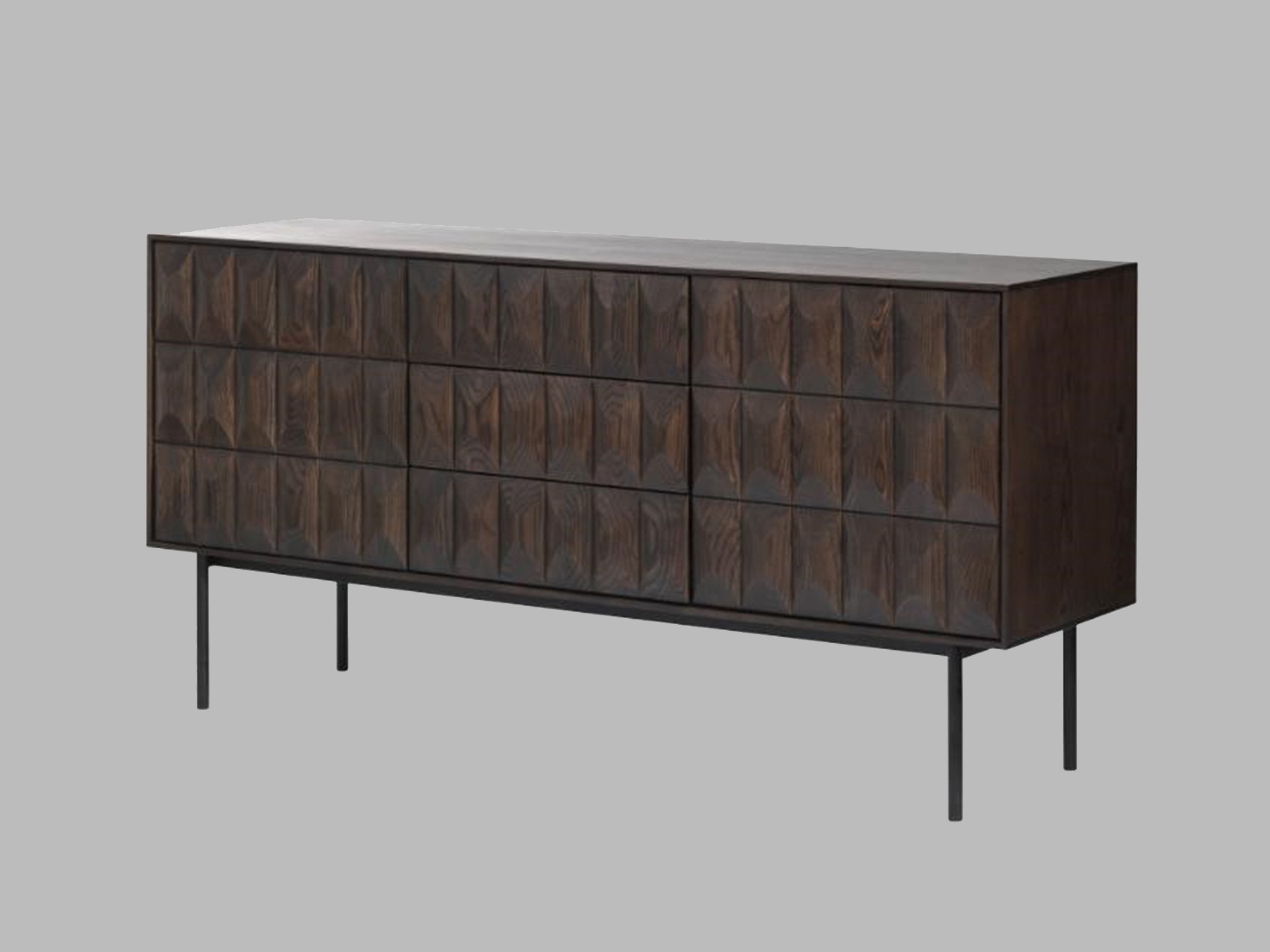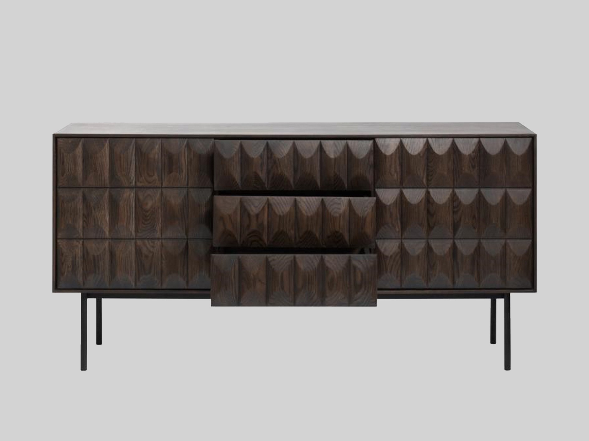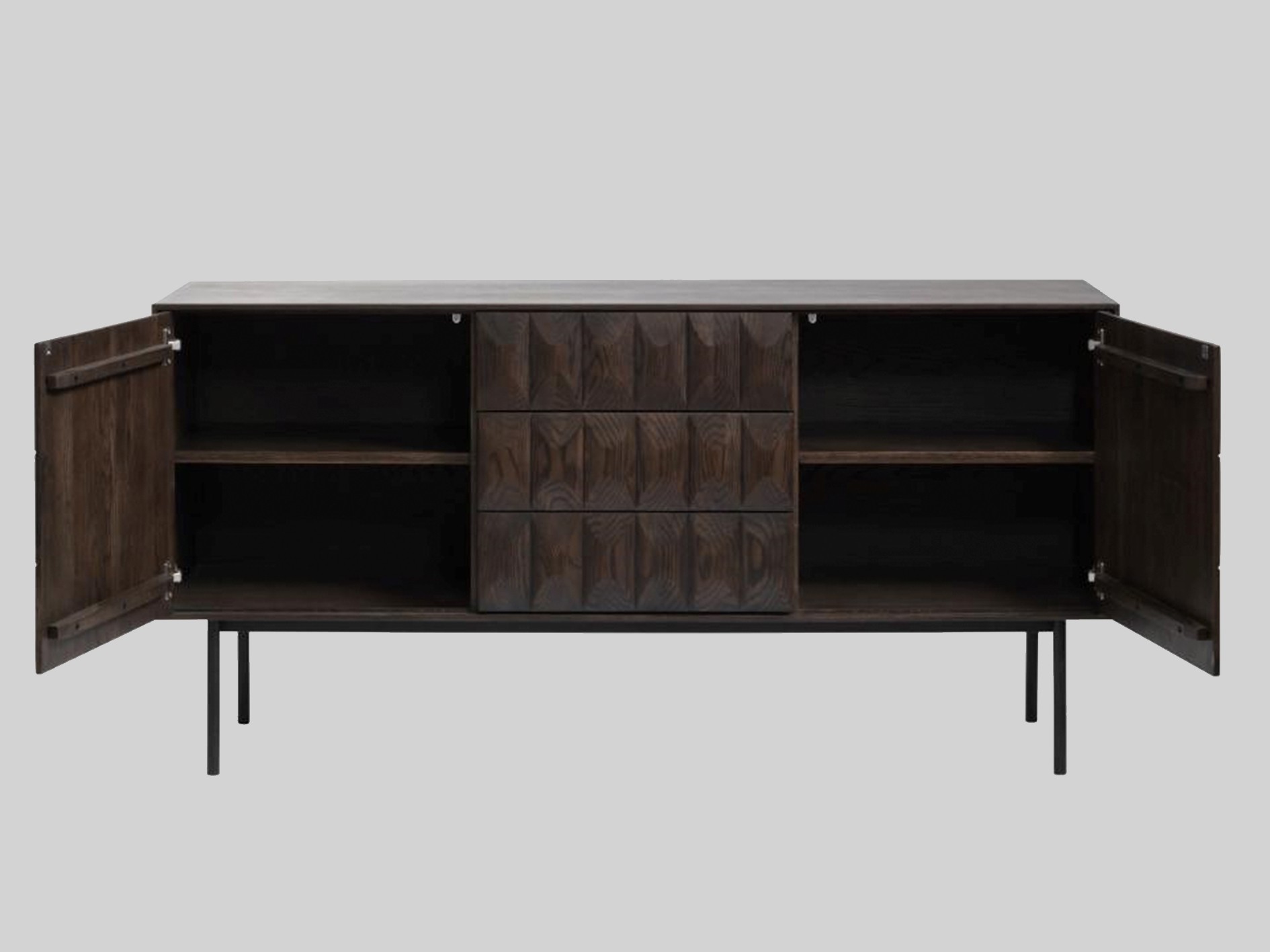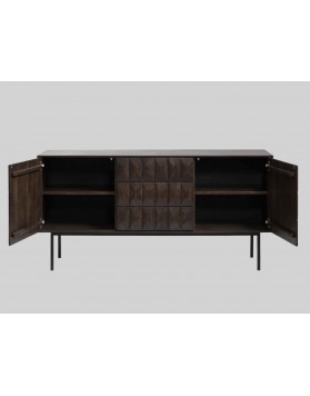 Viene dividido en 3 secciones, dos cajones centrales y dos puertas con baldas en los extremos.