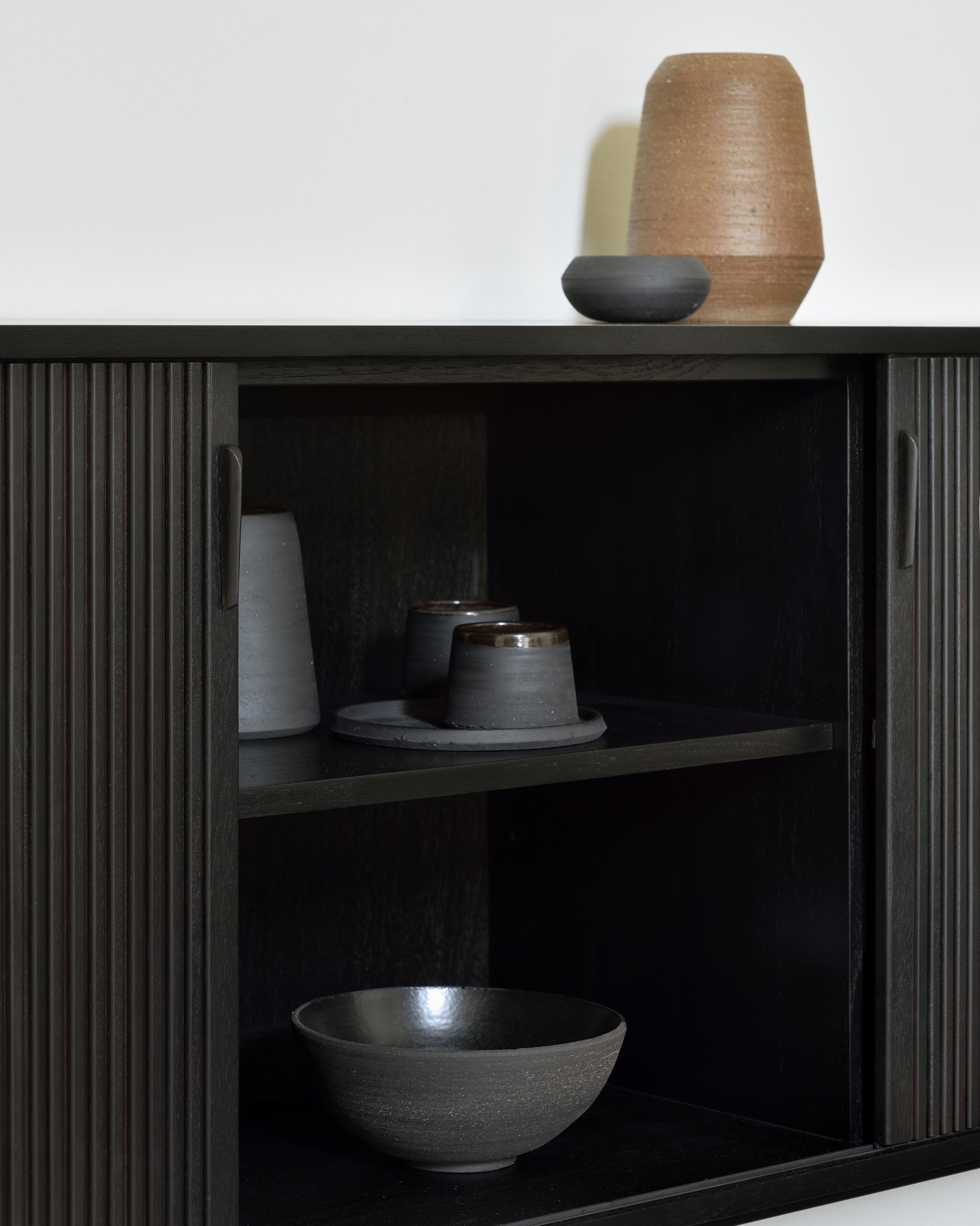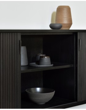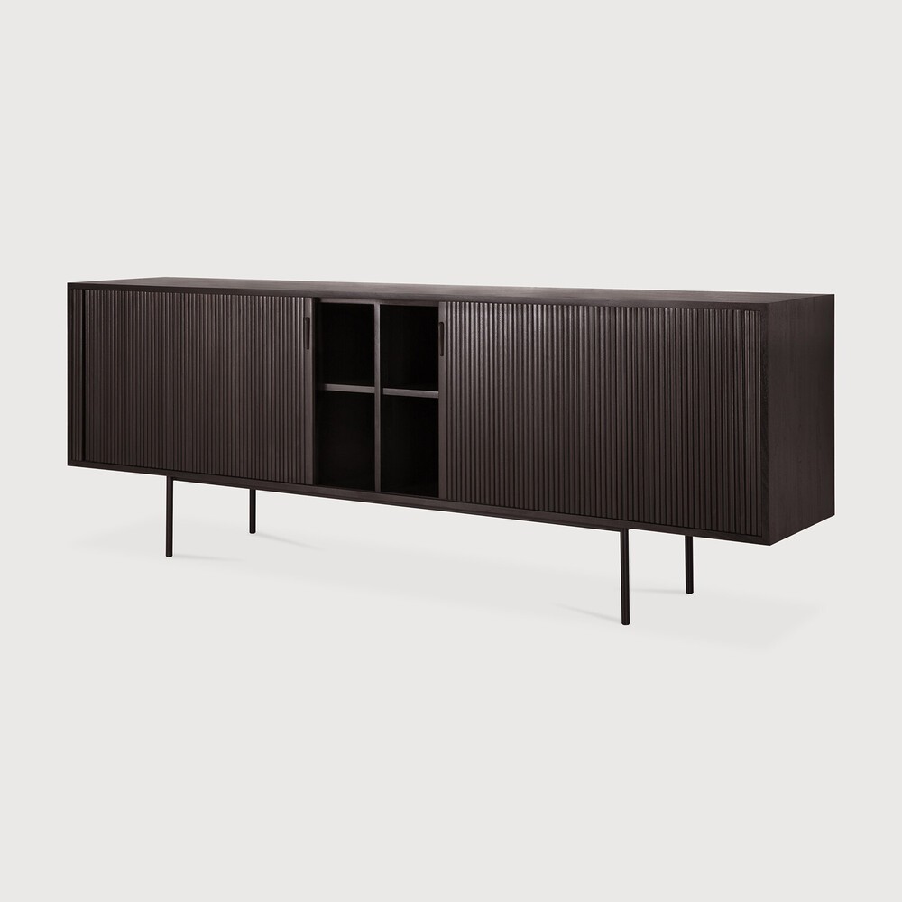 El aparador Roller Max ofrece un almacenamiento funcional en un diseño llamativo. Equipado con puertas deslizantes, estantes ajustables y tiradores perfectamente integrados, esta pieza muestra maravillosamente el diseño de varillas de madera apiladas de la colección. El resultado es un artículo elegante y sofisticado tanto para espacios residenciales como comerciales.