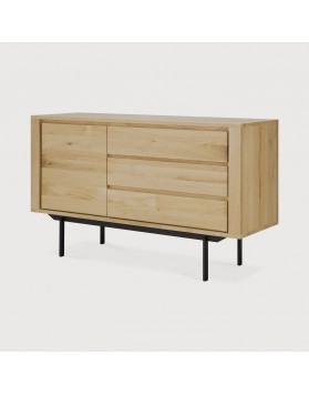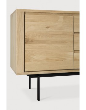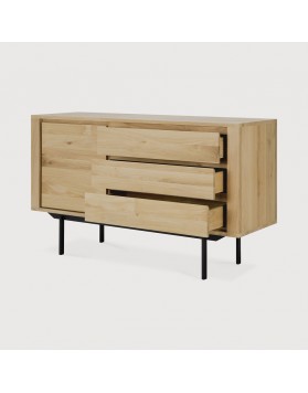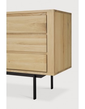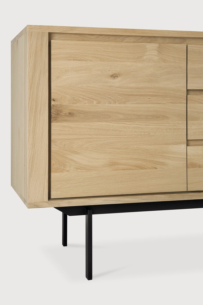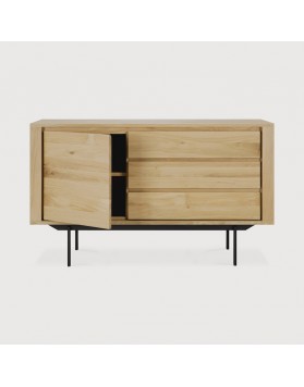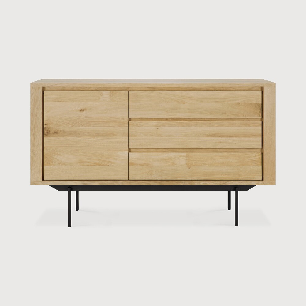 La colección Shadow es sencilla y robusta, con líneas decididas. Este moderno aparador de roble macizo con patas de metal negro, rezume diseño y eleva este aparador a nuevas alturas.
