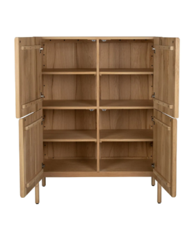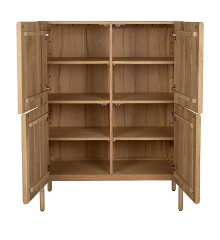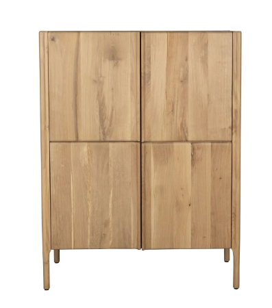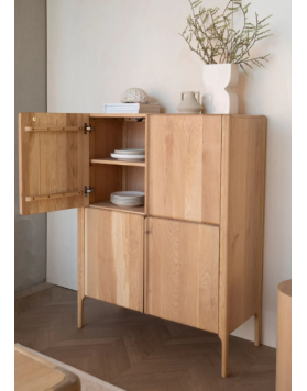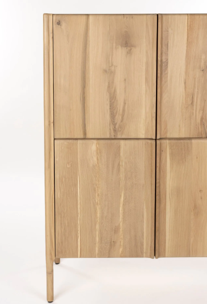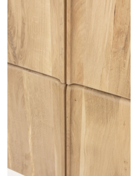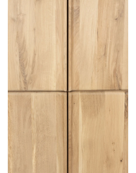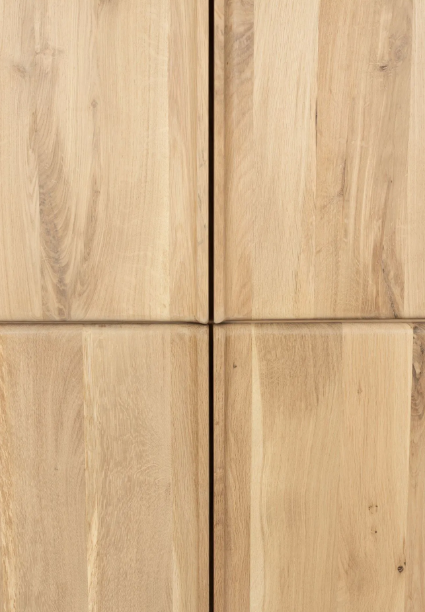 Está elaborada íntegramente en madera de roble y chapa de roble con acabado natural. La disposición de diferentes láminas de madera genera un efecto dinámo y decorativo en la veta.