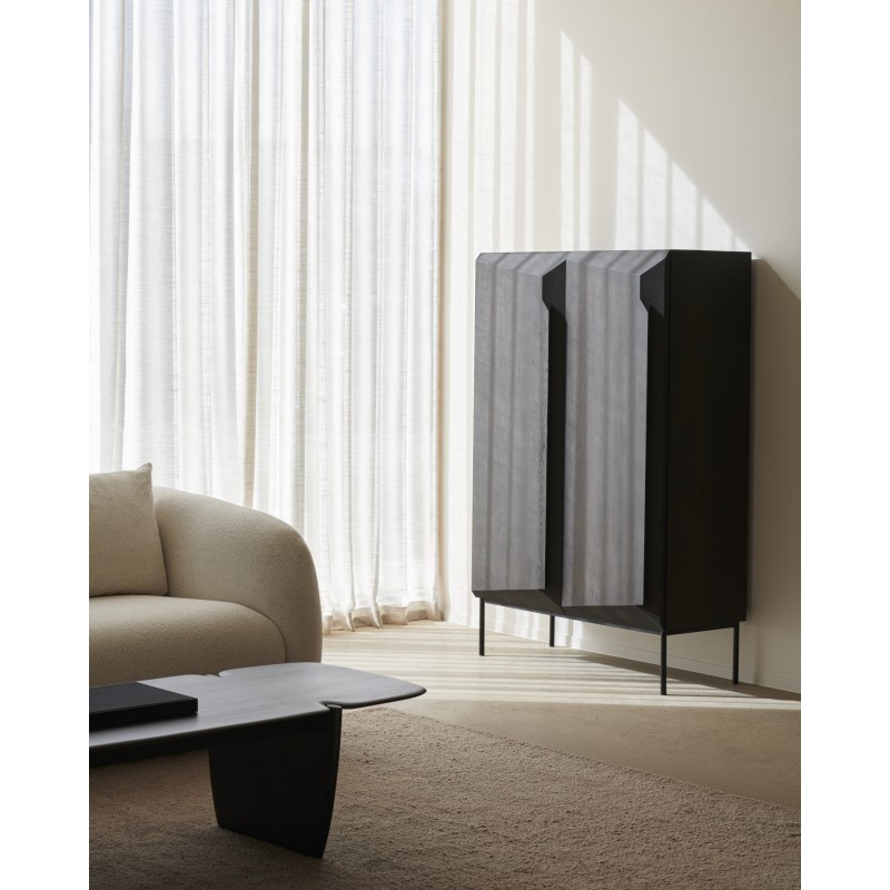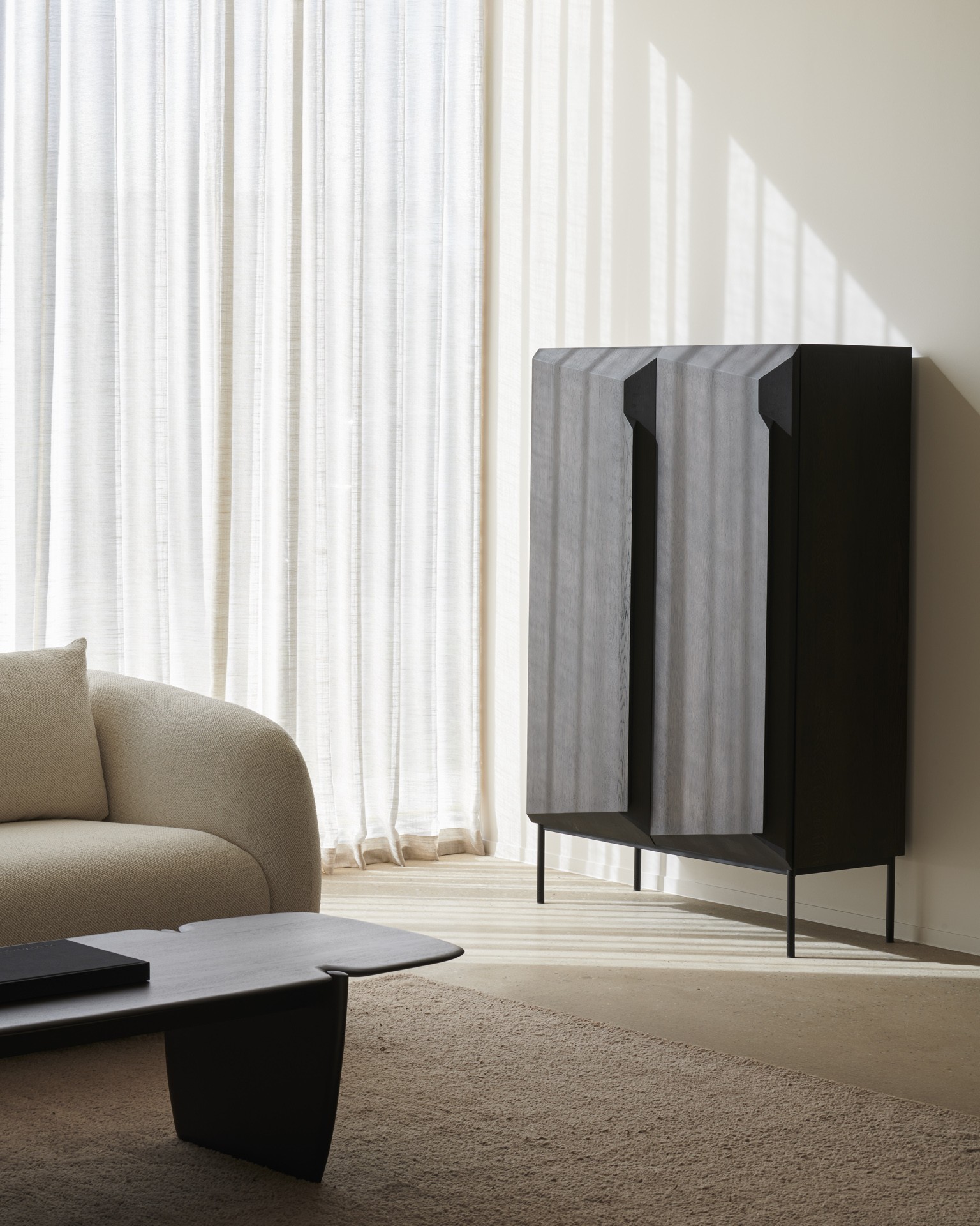 Una composición angular, ideada por Alain van Havre, forma el corazón de un diseño que pretende distanciarse de las superficies estáticas e inmóviles tradicionales. Se crea un sentido único del volumen que altera su percepción del armario mientras usted pasa por delante.