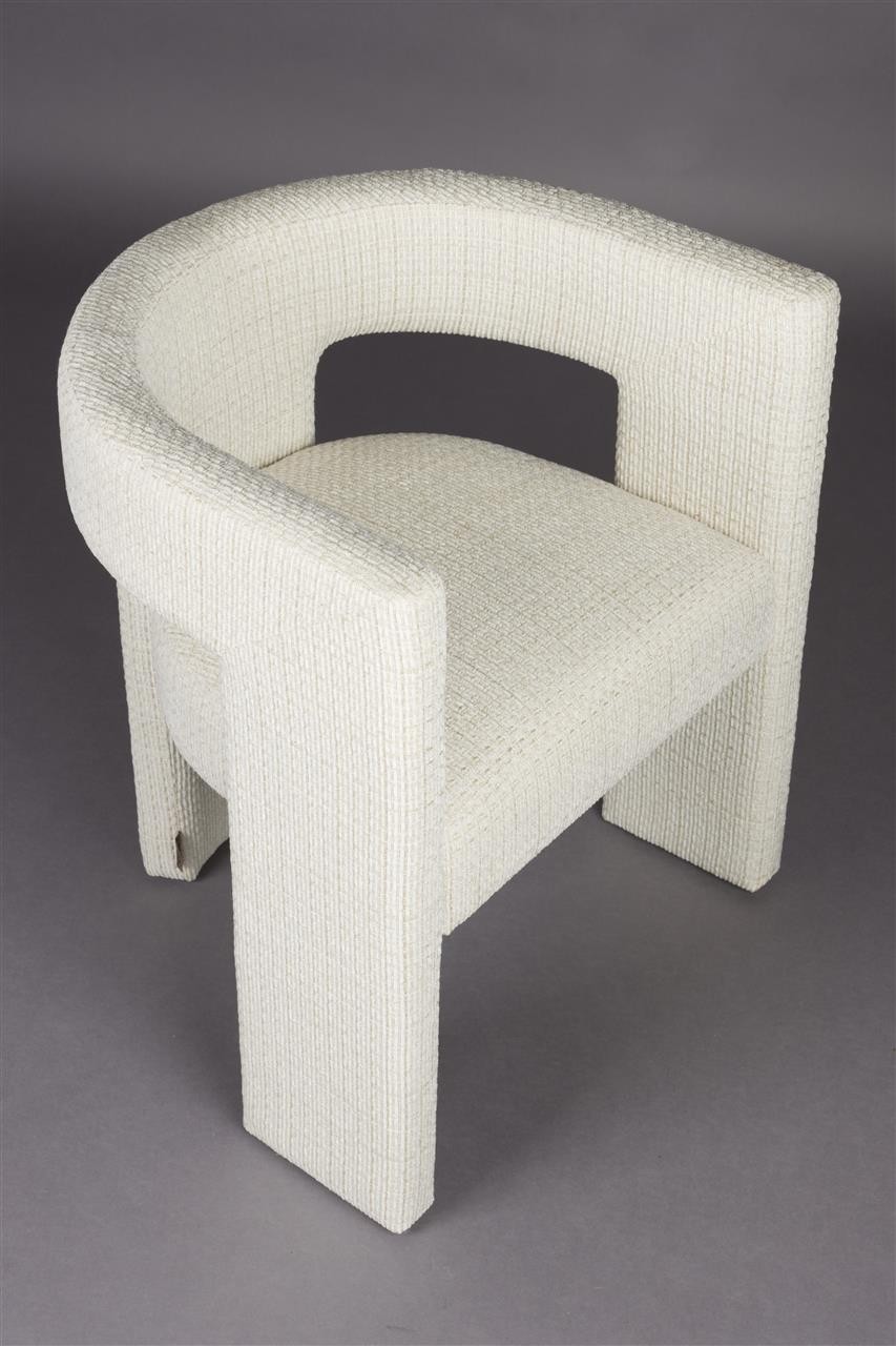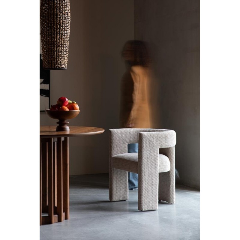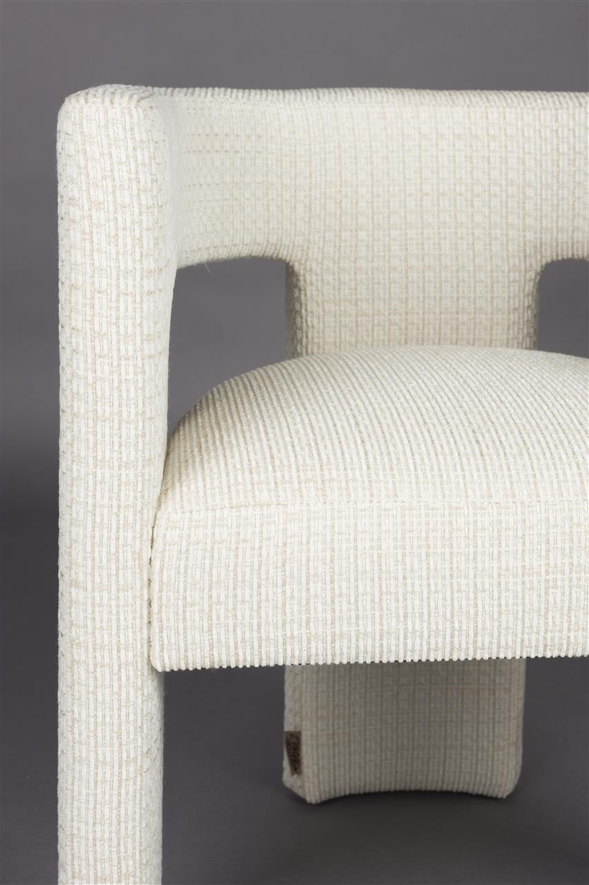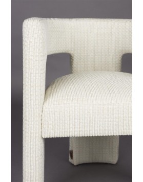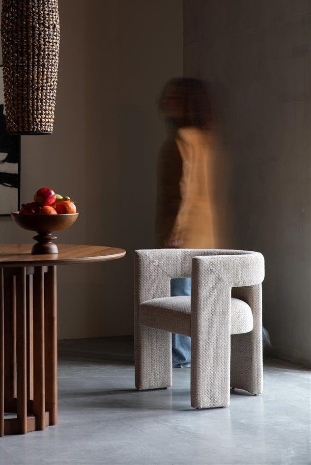 La silla Medina es la prueba de que el confort y la estética pueden ir de la mano. Su tapizado integral en tela de tejido grueso crea una sensación acogedora que invita a relajarse. Los sutiles patrones de la tela evocan el encanto de épocas pasadas, aportando un delicado toque vintage al ambiente.