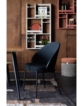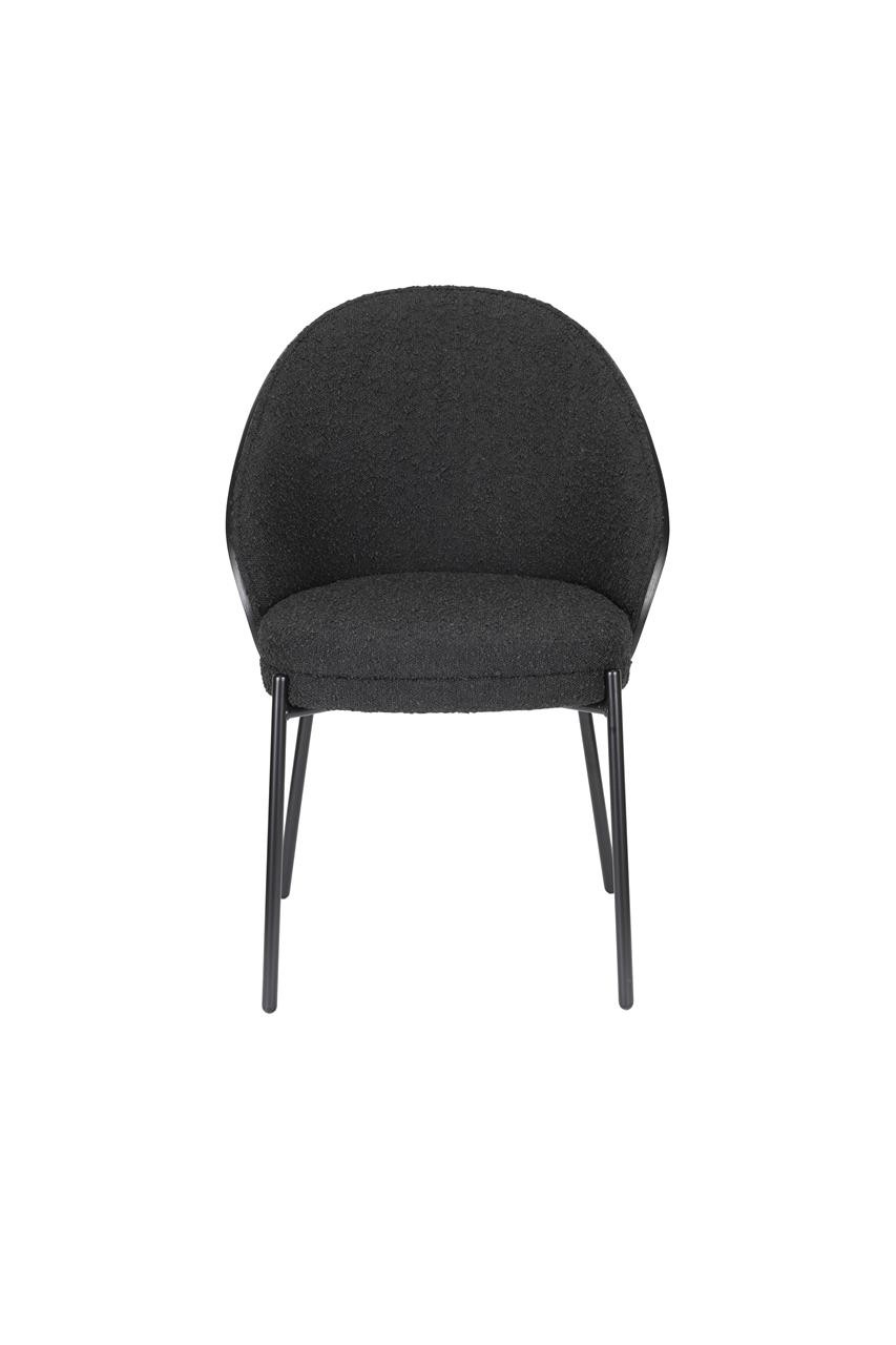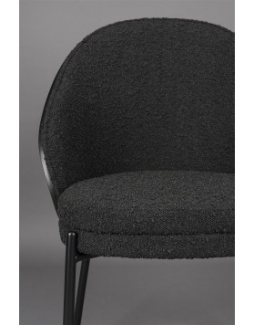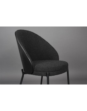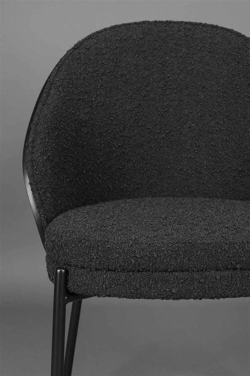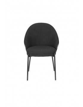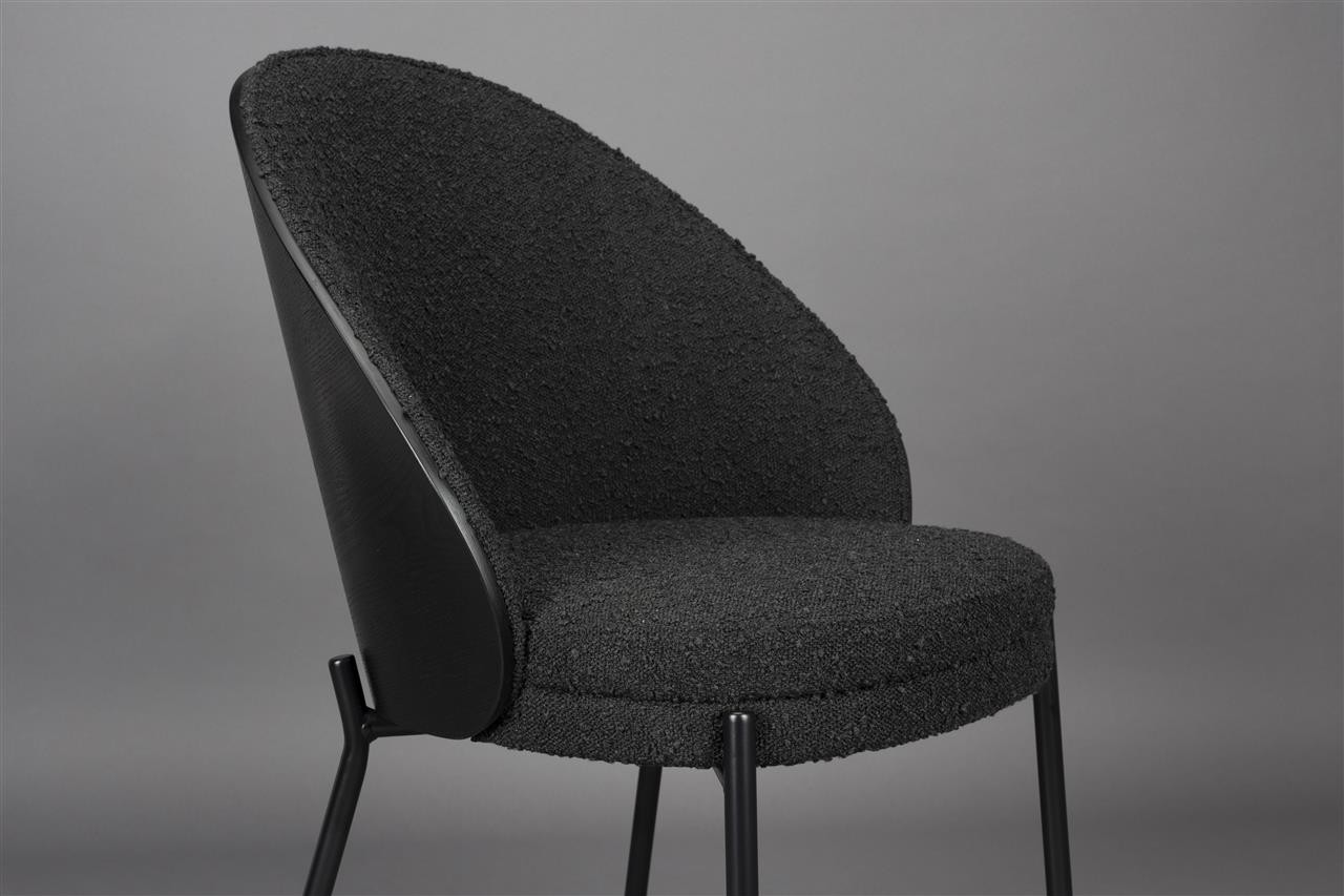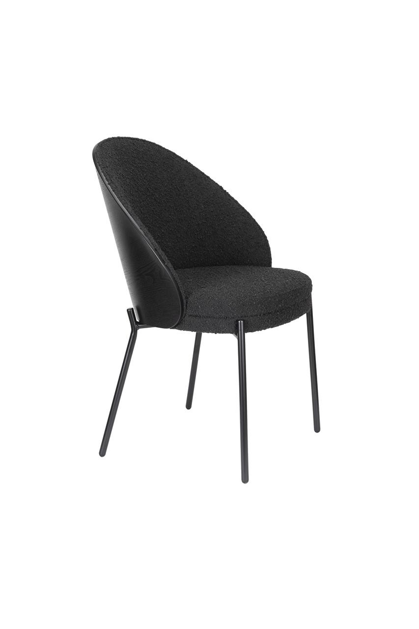 El asiento, tapizado en suave tela bouclé negra, ofrece una comodidad excepcional, mientras que el respaldo de madera curva con acabado negro añade carácter y calidez al diseño. Disponible tanto en versión de silla como de sillón de comedor, es una elección ideal para transformar el salón o el comedor en un espacio acogedor donde compartir momentos especiales con tus seres queridos.