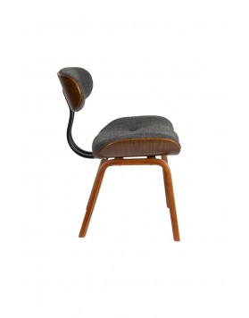 Es una silla que evoca el encanto atemporal de los años 50, reinterpretada para adaptarse a ambientes contemporáneos