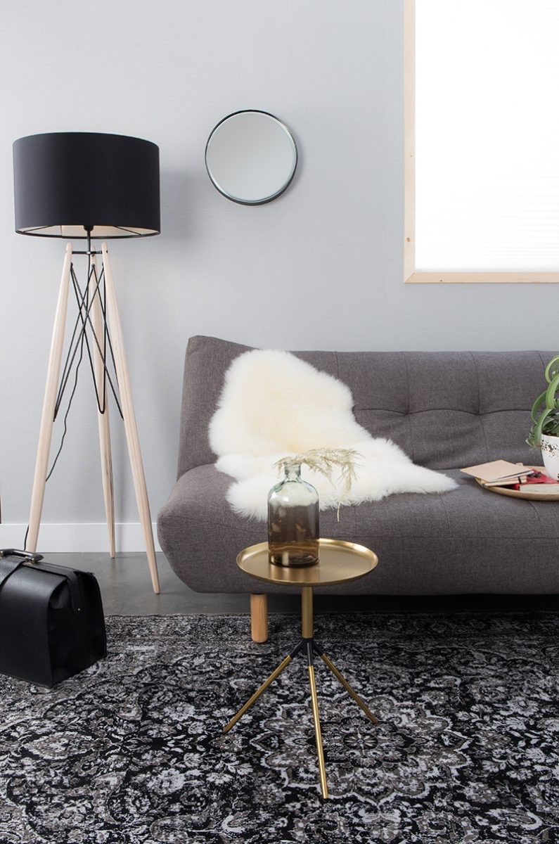 Tablero y patas de latón plateado. Unión de hierro con recubrimiento de polvo negro.Peso máximo de carga: 5 kgDimensiones: 31x37x46 cm (WxDxH)