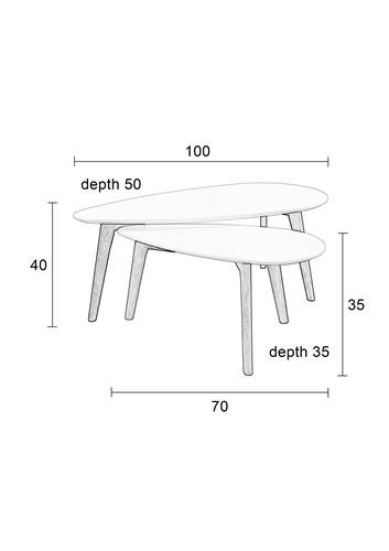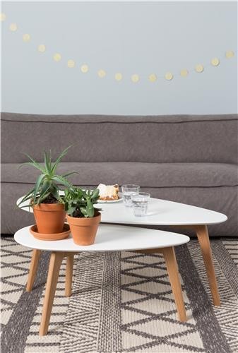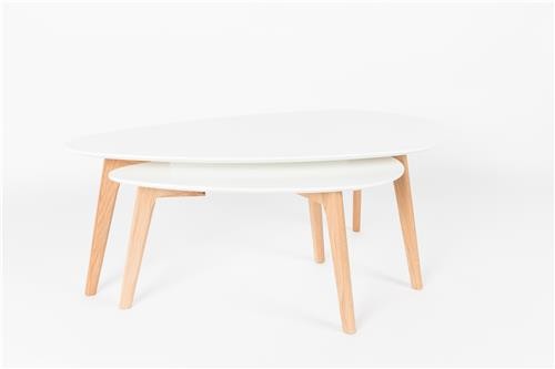 Set de 2 mesas auxiliares fabricadas en MDF con tablero de 18 mm lacado PU y patas de madera maciza de roble