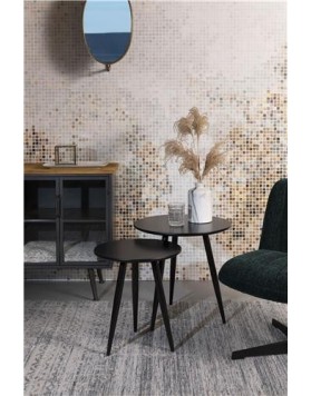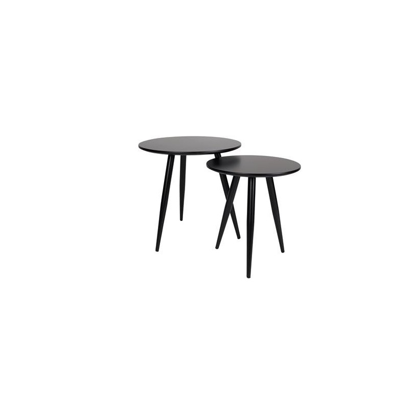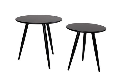 Set de mesas auxiliares fabricadas en MDF con tablero pintado de PU y patas de metal con recubrimiento de polvo.