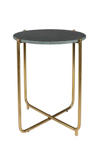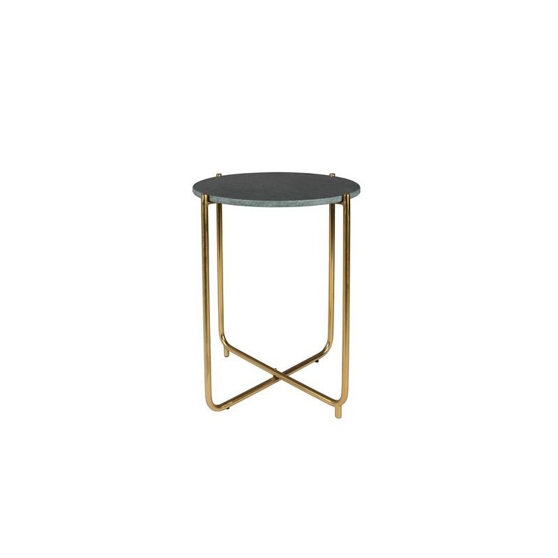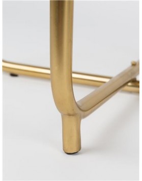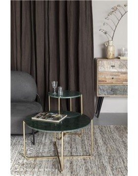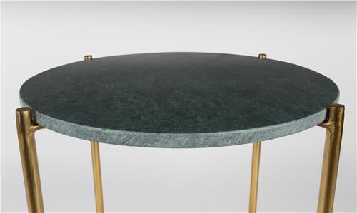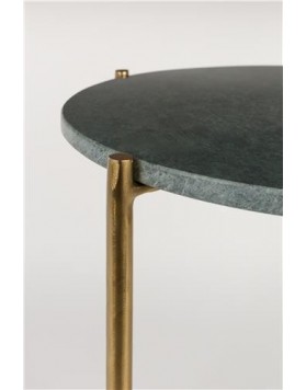 Mesita auxiliar fabricada con estructura de hierro latonado y tapa de mármol en verde o en blanco.