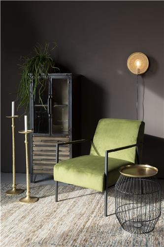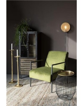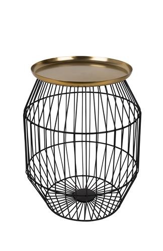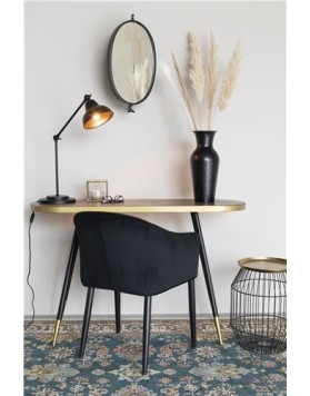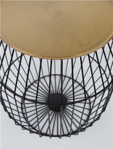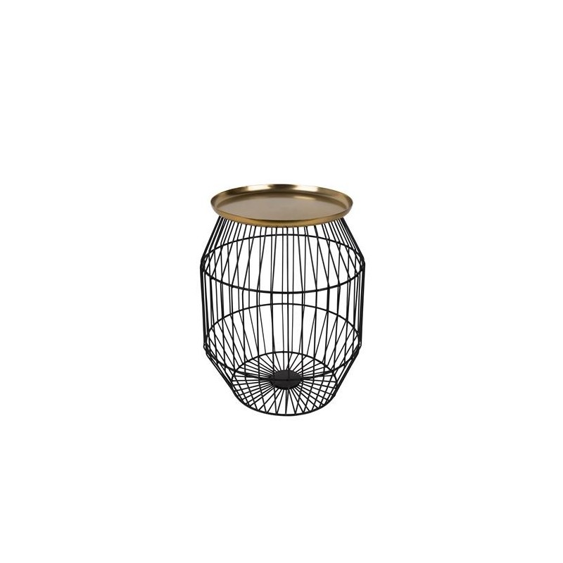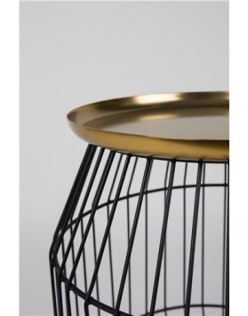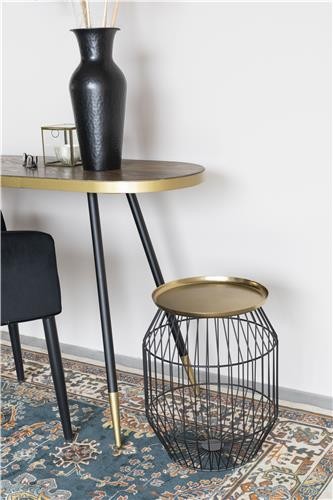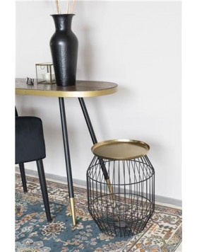Mesa auxiliar con tablero de hierro latonado y estructura de hierro pintado en polvo negro.