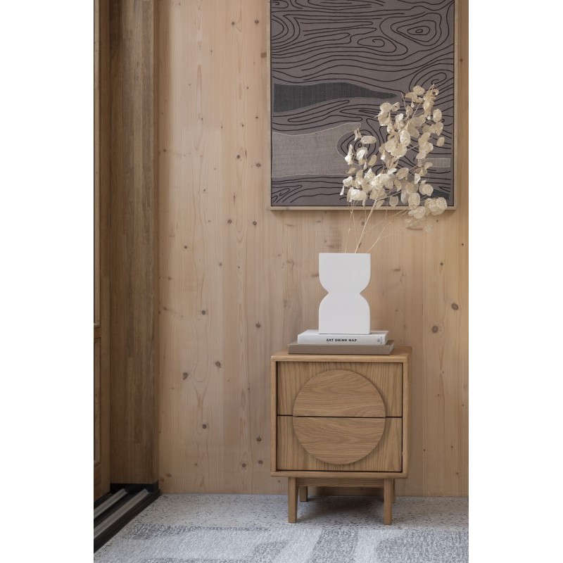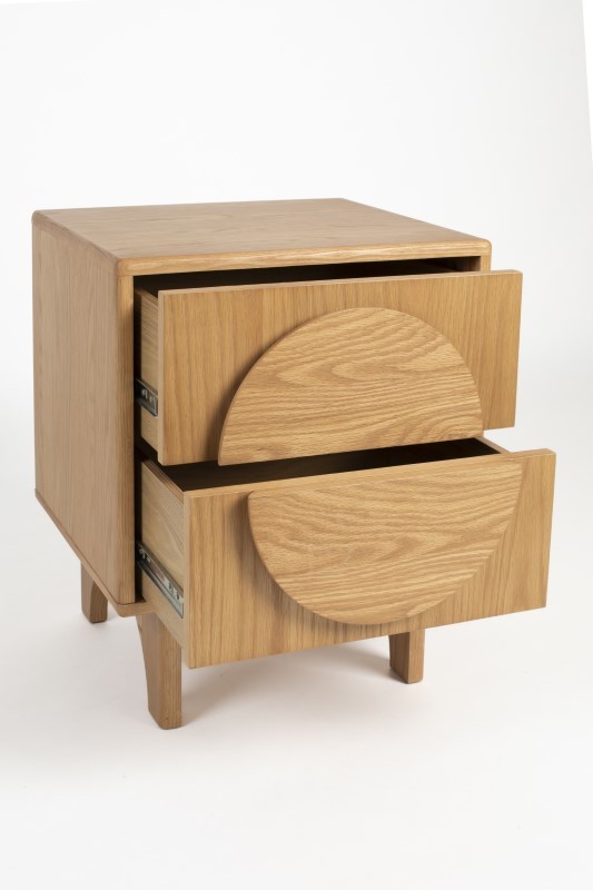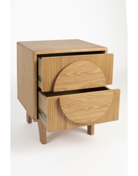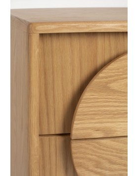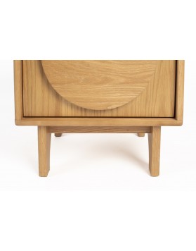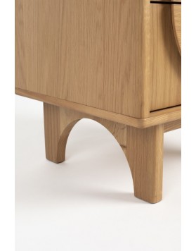 Disfruta de un amplio espacio de almacenamiento sin renunciar al estilo. Destaca por los elementos redondos de madera en las puertas y las elegantes patas redondeadas que le dan un toque único. Groove es la fusión perfecta de estilo y funcionalidad; complementa cualquier espacio sin esfuerzo. Con dos amplios cajones, esta mesa auxiliar ofrece almacenamiento para mantener tus objetos esenciales organizados.