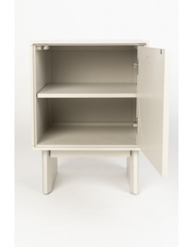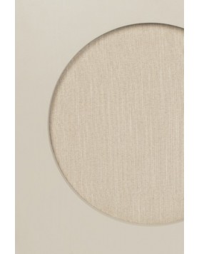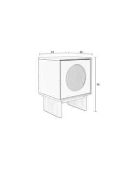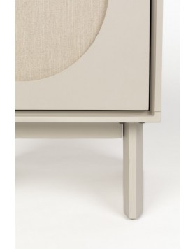 La puerta de esta mesita está adornada con un suave círculo de tela. Los amplios compartimentos con estante ofrecen espacio para guardar lo esencial. Las elegantes patas proporcionan estabilidad, mientras que la madera pintada en gris veteado resalta la belleza natural del mueble.